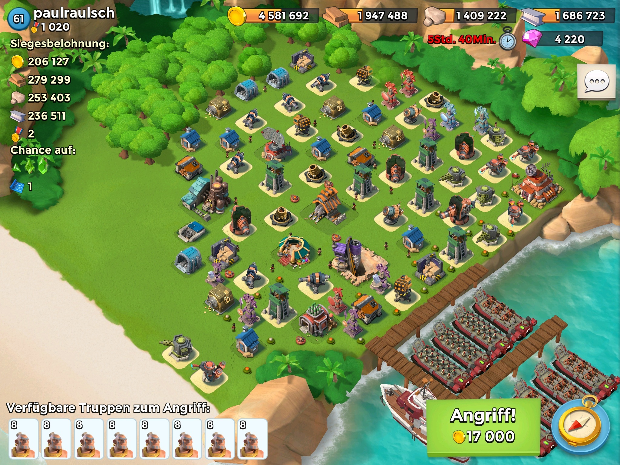 Aber mageren Loot habe ich. Ok, Gold passt, bin nach einem Truppenupdate pleite, aber vom Rest habe ich durch das Minidefence-leveln eigentlich 3 mio von allem