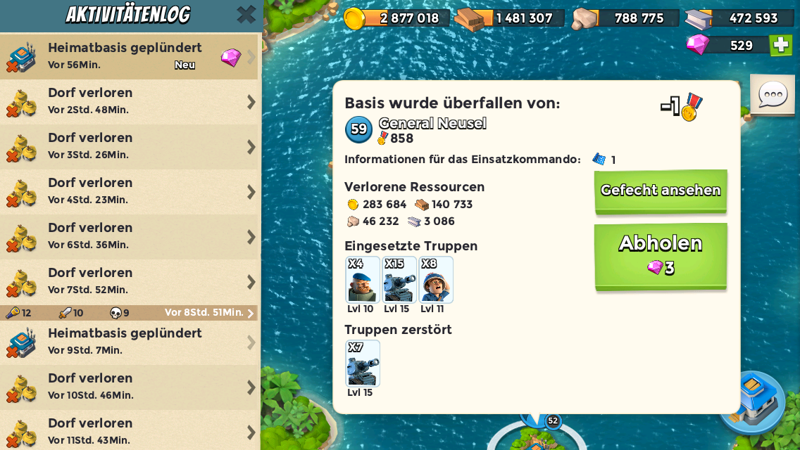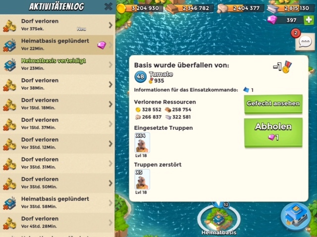 Alles anzeigenChef: habe hier tatsächlich nicht drauf geachtet weil manchmal die map von mir geleert wird, solange ich unter boost stehe. Das kommt vor. Ansonsten bin ich durchaus gewillt Dias zu spenden ... denn die VP bekommt man früher oder später eh ... sorry dafür. Vorher hatte ich auch noch die basen meiner beiden "CHEF's" angeschaut ... da war keiner von involviert, daher habe ich dann angegriffen.