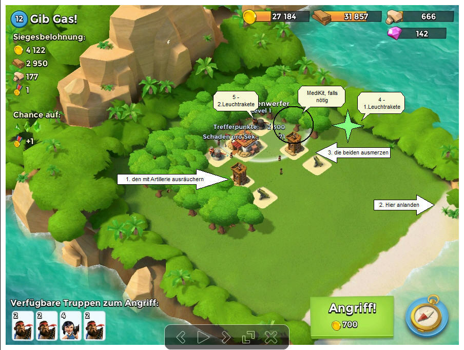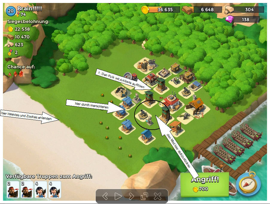 Alles anzeigengib gas ist einfach erst den linken Schützenturm zerstören dann alle Truppen GANZ GANZ rechts anlanden