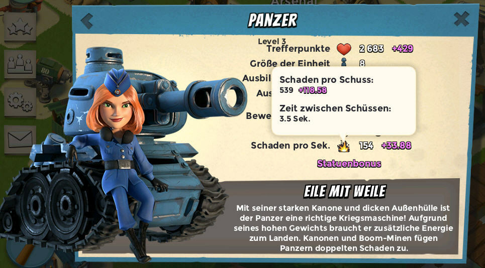 Dann werde ich Ratze Fratze zwei Boote auf Level 16 bringen, damit ich dann 4 Medics pro Boot mitnehmen kann. Plus 10 Tanks dann