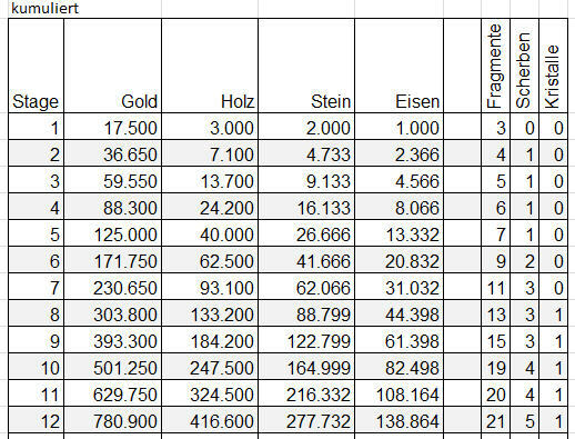 Als Nächstes levelt dann die Schatzkammer, dann der Steinmetz und dann das Arsenal… klingt nach einem Plan. Jetzt brauche ich nur noch Ressourcen