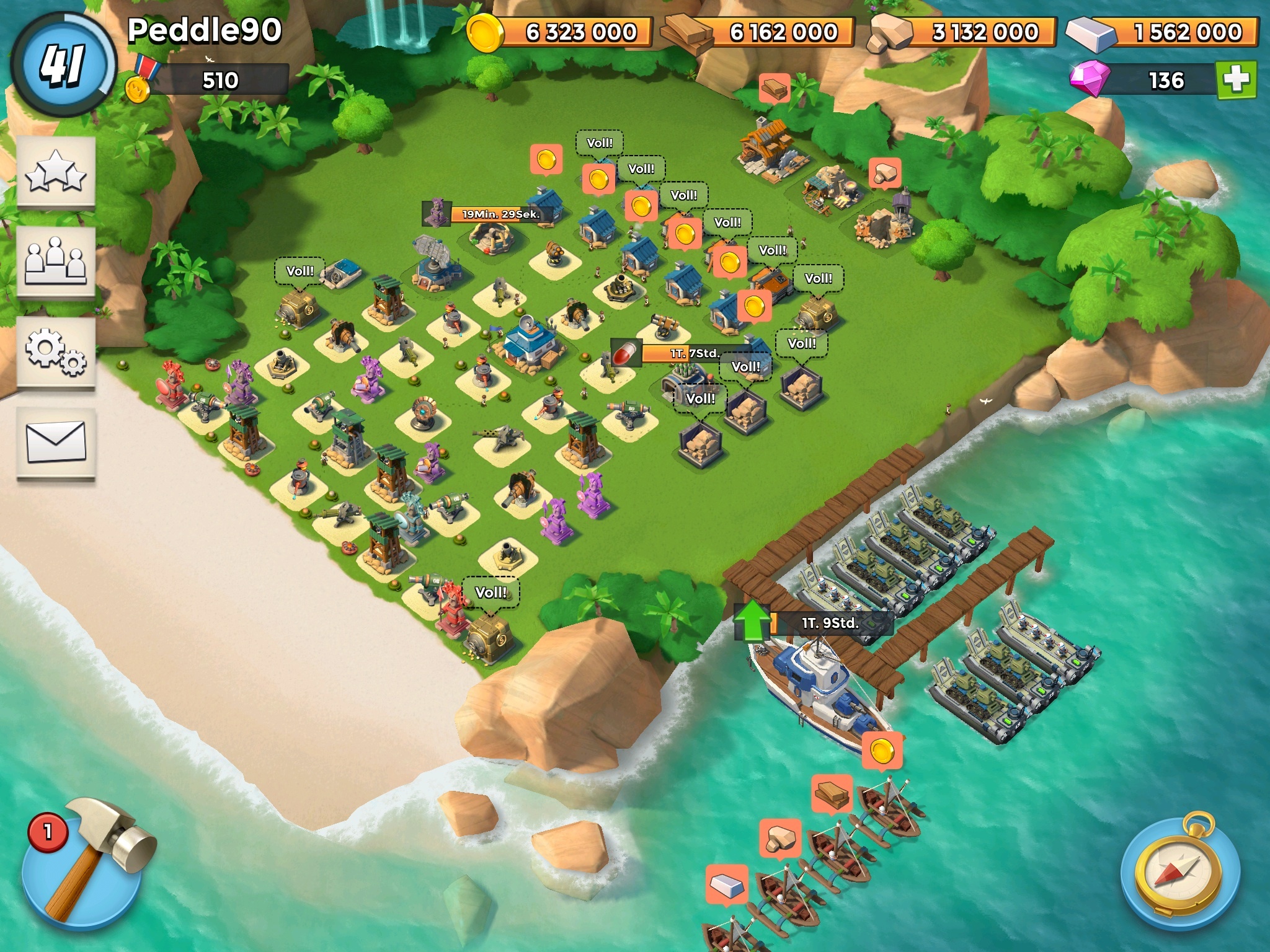 Warrier gehen auf 12 und für ein zwei stückchen land sollte es auch noch reichen.Hatte ja gestern upgrade auf hq16 gestartet, habs grad mit dias beendet und mein siebentes boot gebaut als vorbereitung für morgen dann hab ichs wesentlich leichter. Das boot wurde grad auf 11 gelevelt, mit diahilfe beschleunigt. Das heißt für morgen 5 warrier mehr, sollte also ein kinderspiel werden.