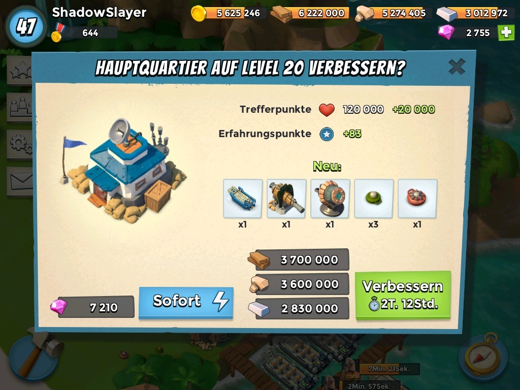Bin ungeboostet mit psan bis 20 gekommen aber dort vor lauter wirwarr und zu kleinem iphonedisplay hops gegangen, hab ne boom übersehen und die hat meine tanks zu sehr minimiert so das ich am hq zu lange brauchte und mich die doofen rackwerfer platt gemacht haben. Mit den kriegern wars dann easy.Steine gabs 58/10/5
