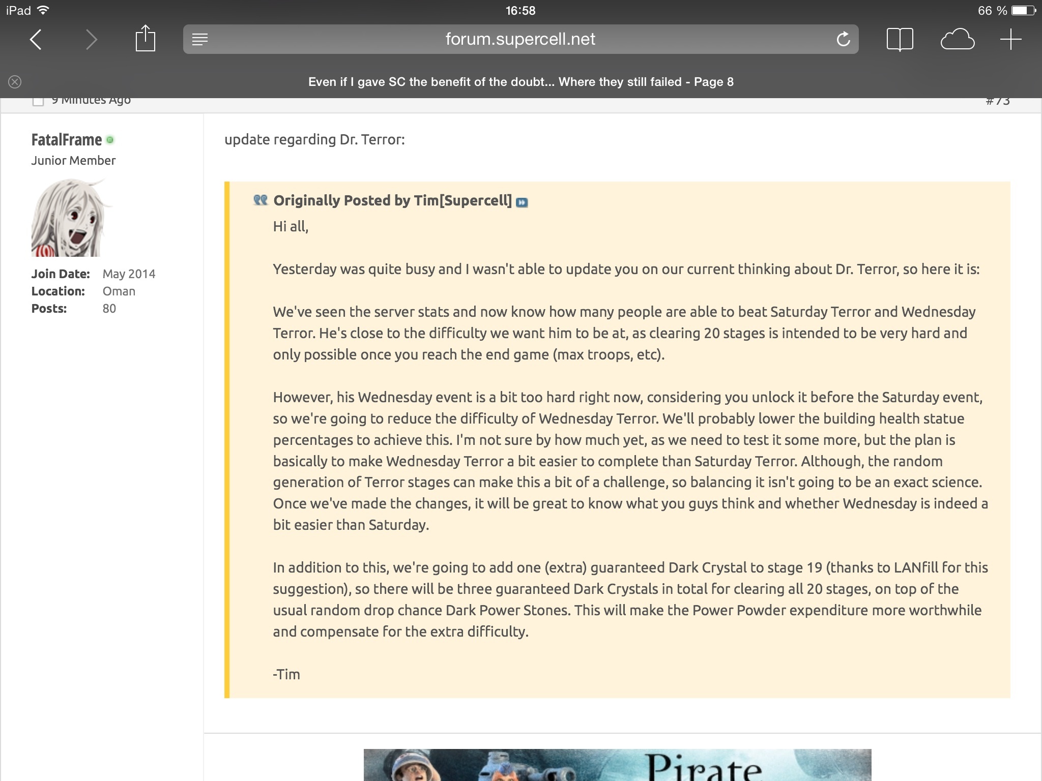 Mit Tanks sehe ich es genau anders als Tim, die breite Insel kommt mir wesentlich leichter vor in den Stufen die ich erreichen kann. Zumindest vor sem Patch ging es Samstags immer 1-2 Level weiter als Mittwochs.