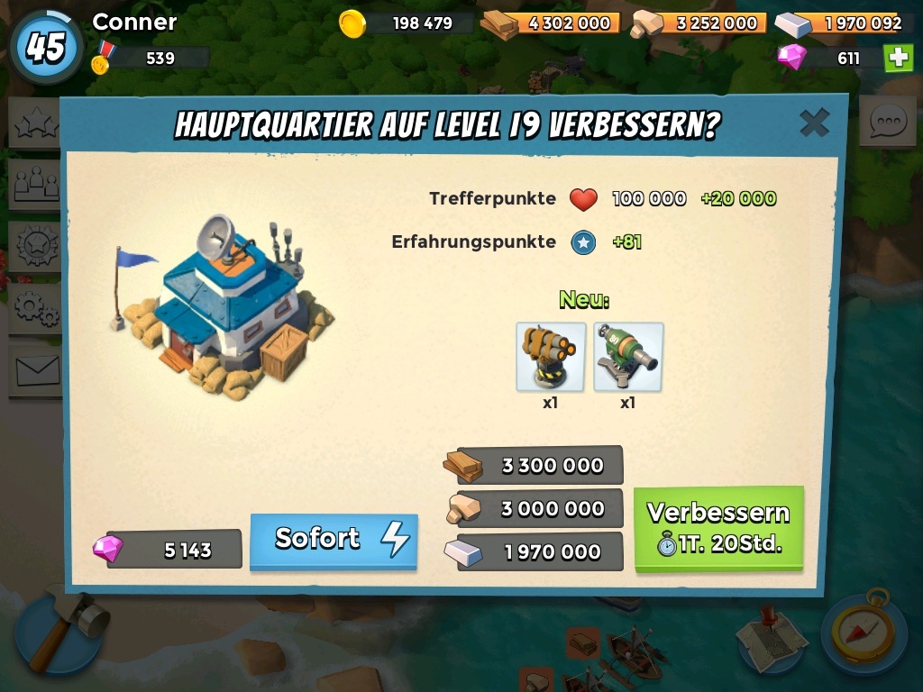 So, habe ein wenig umdisponieren müssen, da es mehr Gold zu verteilen gab als ich erwartet hatte: Also sind jetzt nicht die Heavies in der Muckibude- sondern die Barrage levelt auf Stufe 3- gleichzeitig noch ein LC auf Stufe 10- und für den Fall dass mich in der Zwischenzeit keiner raidet und ich nachher noch eine Stage beim Doc schaffe wird dann am späteren Nachmitag noch ein LC auf Stufe 11 gelevelt.