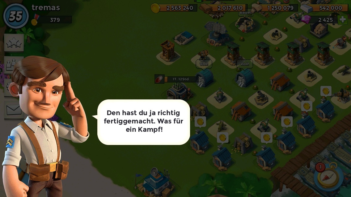 Es hat sich gelohnt trotz das ca 1.5 mille an gold für truppen drauf gingen und ca 400 dias fürs beschleunigen und ca 500 dias fürs beschleunigen um die ressis unterzubringen. Bin dadurch von level 35,5 auf ganz knapp vor 36 gesprungen. Hab glaube 5 mal lager upgegradet.