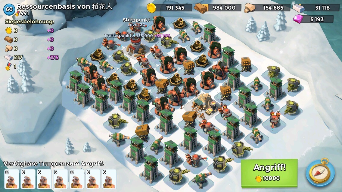 Ps: dann würden deine warrior auch noch schaden am Strand bekommen denn ein smoke reicht nicht für alle aus dann denk ich mal das die boom alle noch ganz knapp in Reichweite sind und somit auch einzelne warrior gut ausschalten aber ohne blaue statuen ist sie einnehmbar aber mit gepuderten teilen sieht es anders aus....