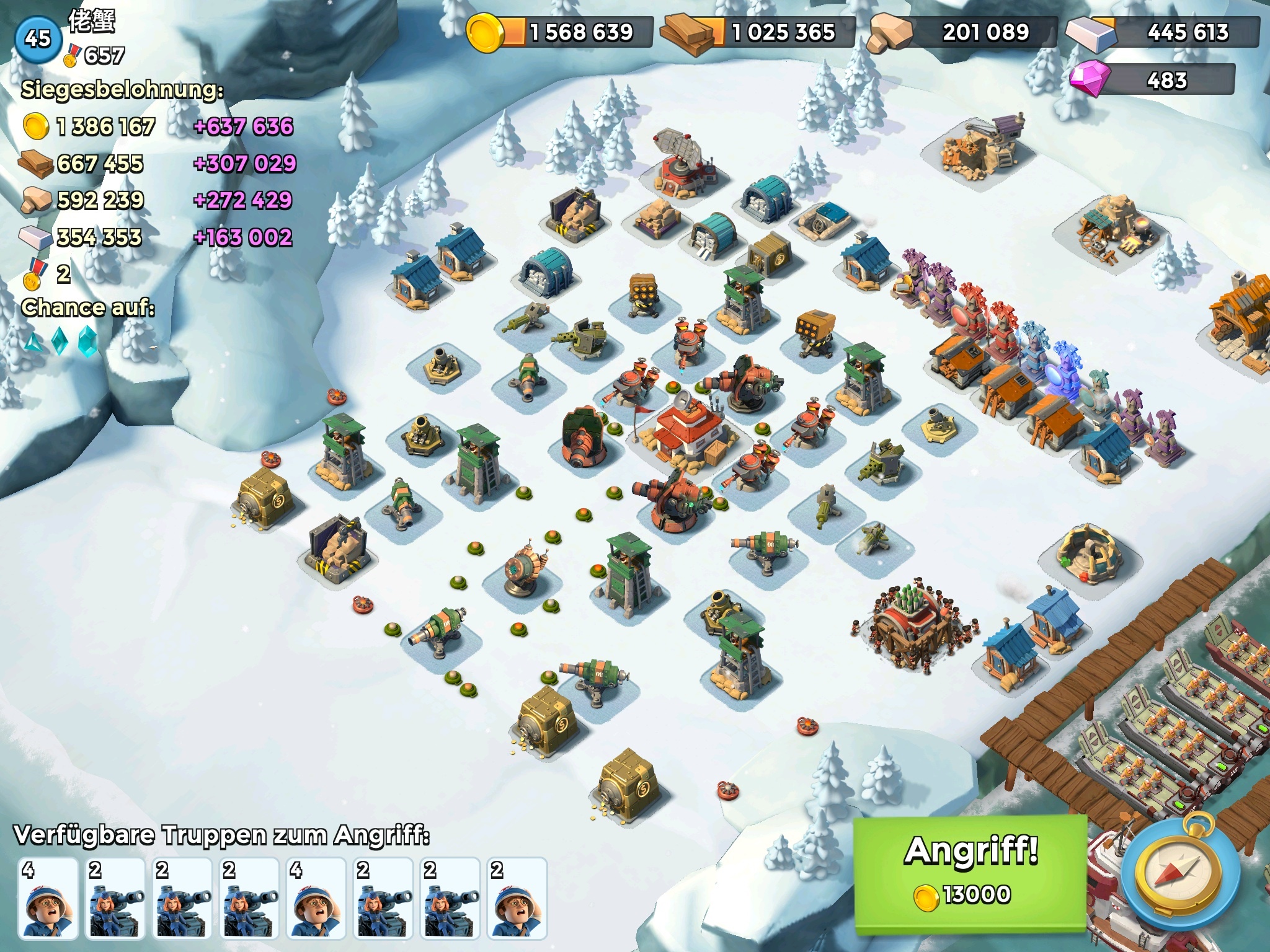 Ich bekomm auch selten gute und supergute garnicht, das beste was ich bis jetzt hatte waren 300k gold und der rest ca 100kHab aber ne menge die ok sind, bin grad am farmen und überbrücke die wartezeit bis meine warrier wieder heile sind. Brauche 1,2 mio holz 800k steine, ich glaube da müßen alle auf der karte dran glauben.