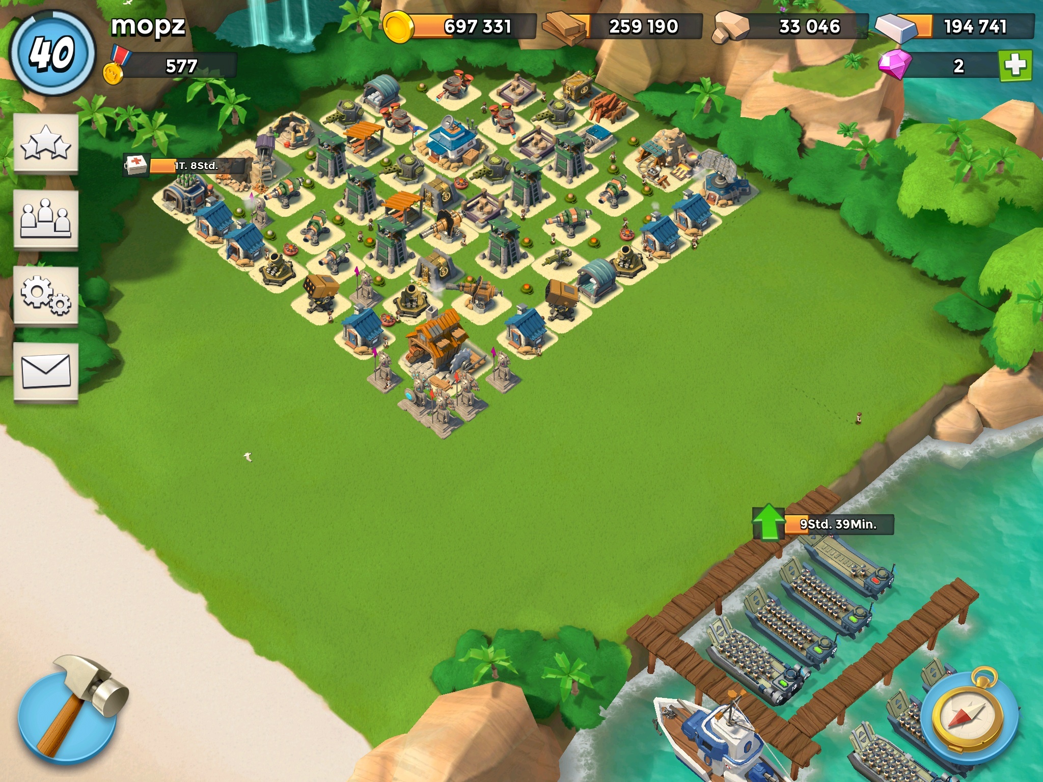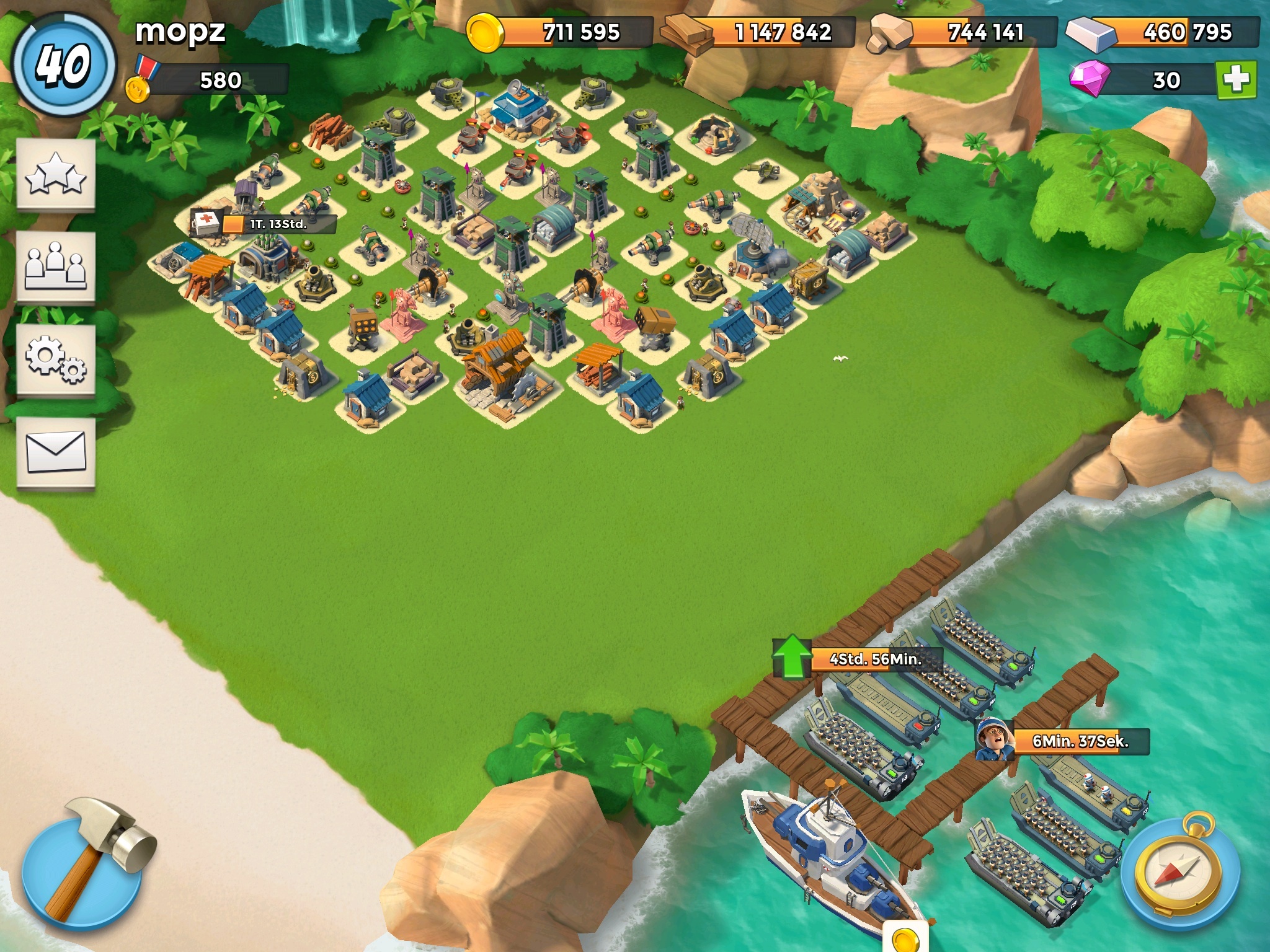 Tausch mal die Booms mit den mittleren Türmen. Das Hq etwas aus der Ecke raus und die Defensive da kompakter machen ( flammenwerfer hinter das Hq, Mg's davor. -