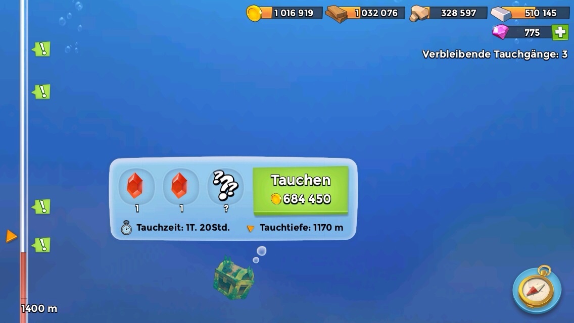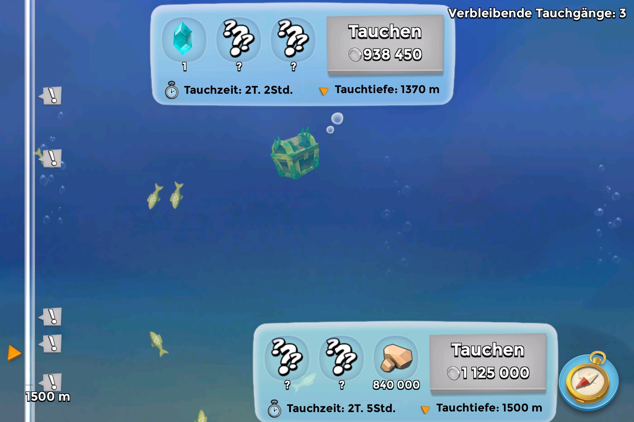 #37 Alles anzeigenHab mal ne Frage bezüglich des Tauchend. Sind die Frage-Zeichen-Slots besser wenn man einen tieferen Schatz taucht oder ist jeder Überraschungsschatz mit ner bestimmten Wahrscheinlichkeitsverteilung das "gleiche" Ergebnis? Anders gesagt, sind tiefere Überraschungen immer besser?