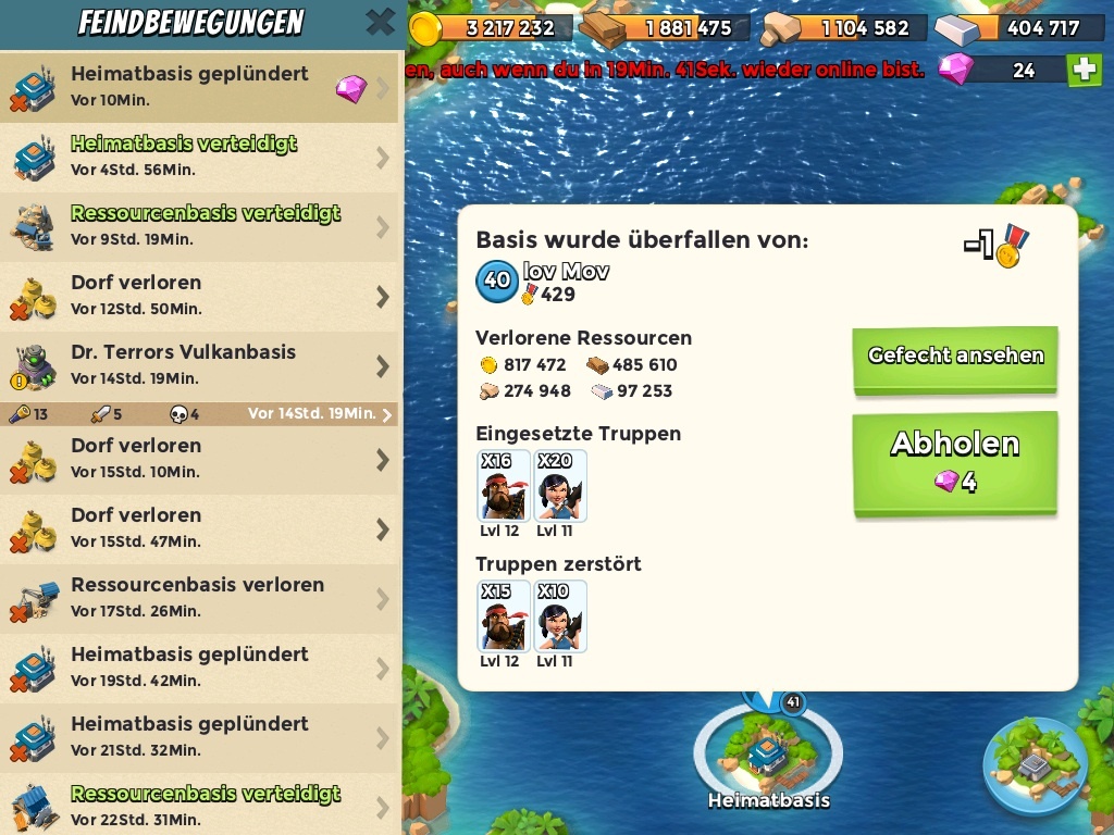 Auf die Million käme ich auch beinahe, es waren neulich mal fünf erfolgreiche Plünderungen in 24 Stunden.