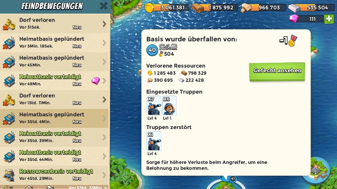 Mein Beispiel ist schon gut, aber sicher ist das noch zu toppen, schliesslich hat mein Angreifer auch eine Menge verloren. Wo ist das 1.000.000 Gold zu Null Verlusten und wo das geplünderte Eisenlager? Her damit!