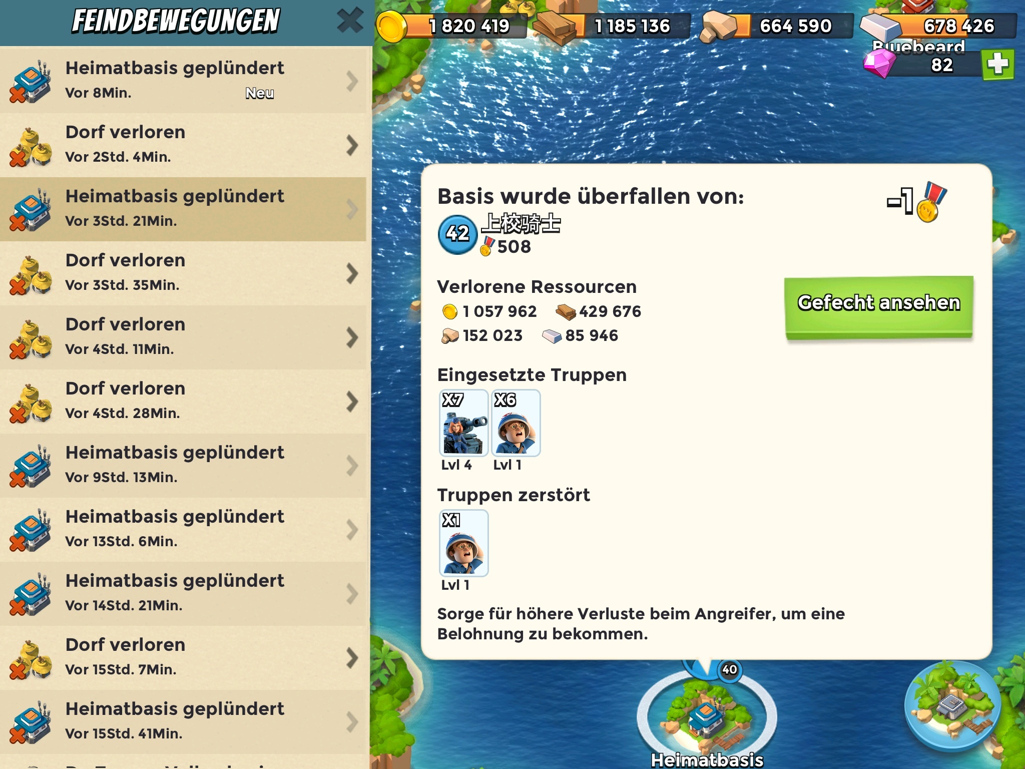 Mein Beispiel ist schon gut, aber sicher ist das noch zu toppen, schliesslich hat mein Angreifer auch eine Menge verloren. Wo ist das 1.000.000 Gold zu Null Verlusten und wo das geplünderte Eisenlager? Her damit!