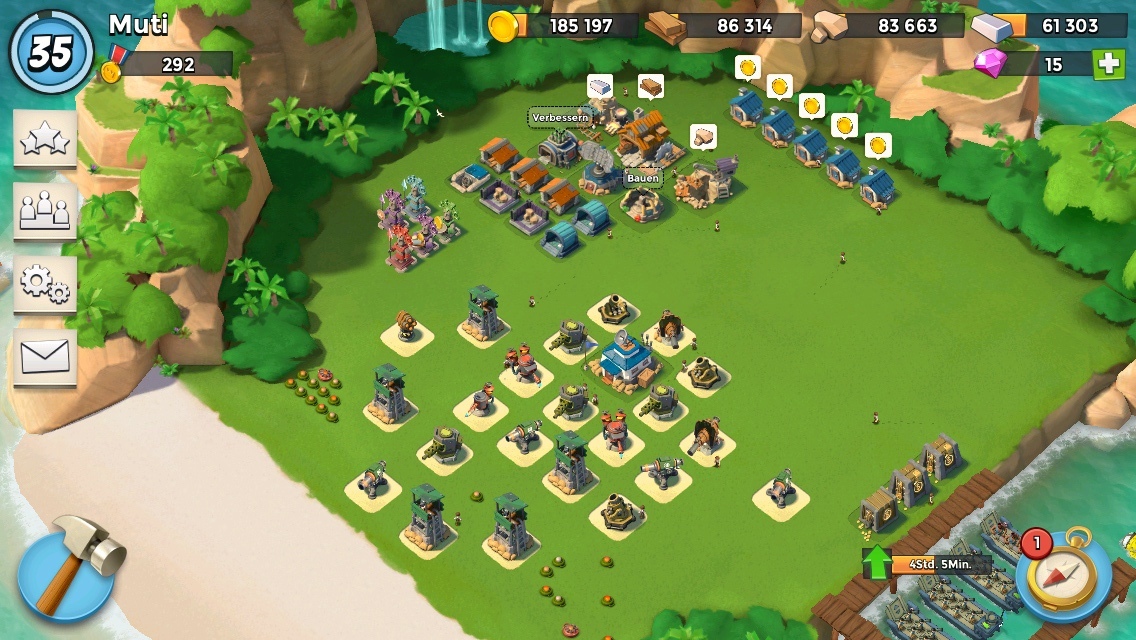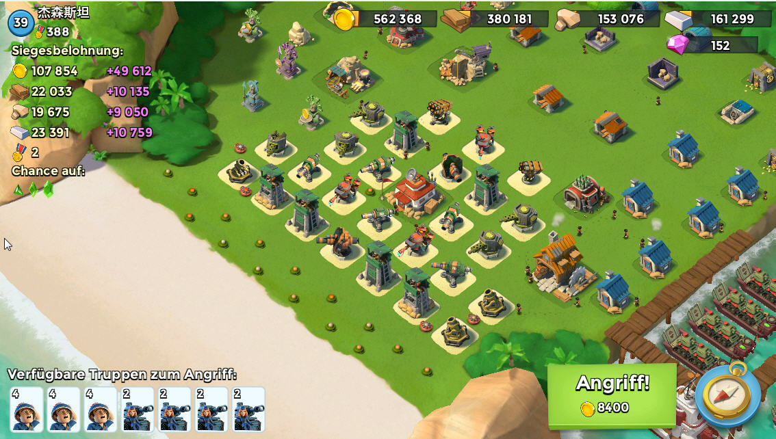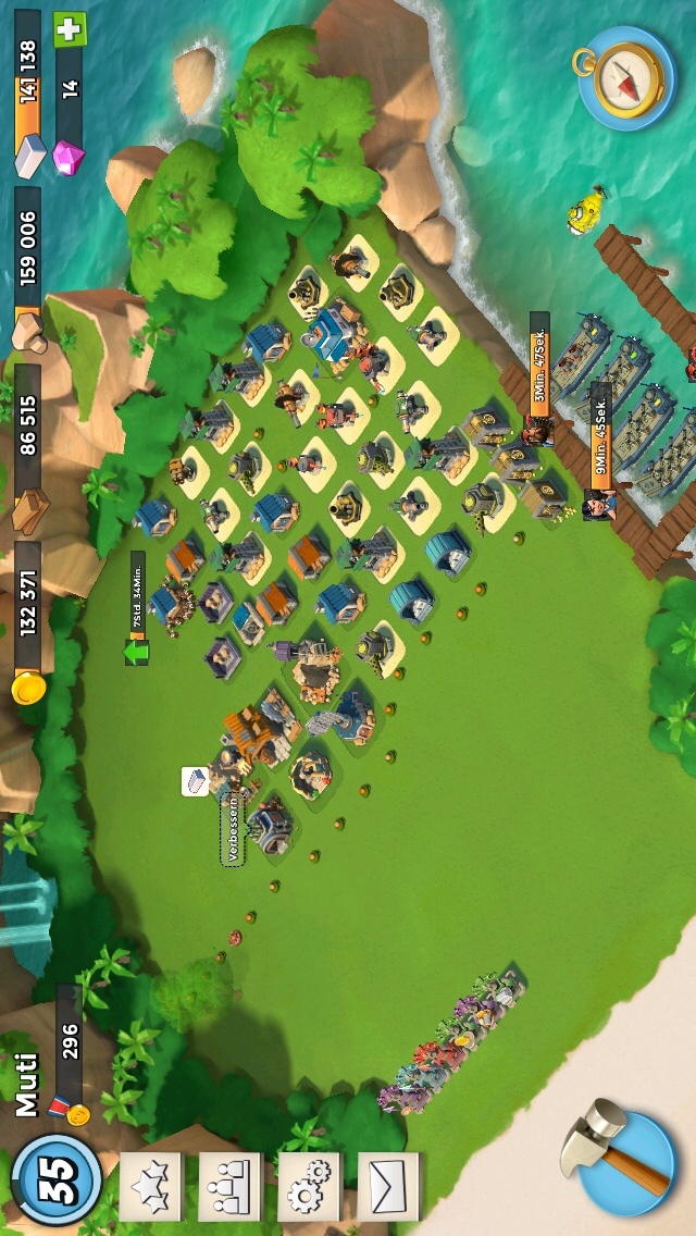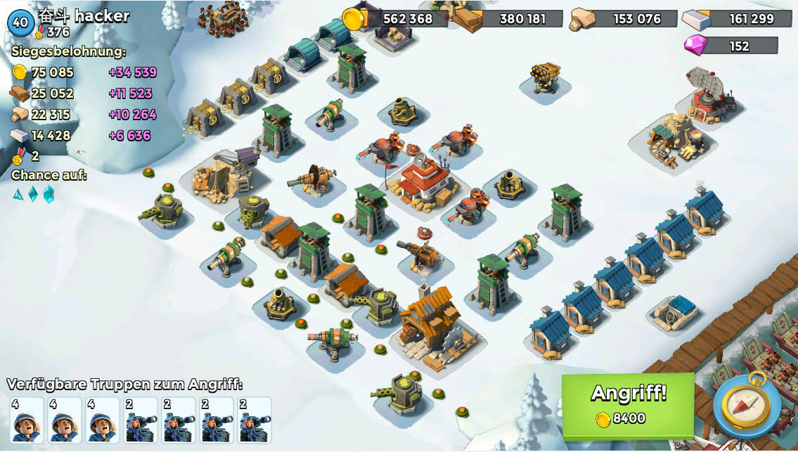 Goldhäuser LVL 8-9, Holzlager 2 mal LVL 8, Eisenlager 2 mal LVL 8, Steinlager 2 mal LVL 8, Goldlager 2x Level 8 + 1 Level 6, Boom Kanone Lvl 3+4, Raketenwerfer LVL 2, Schützenturm 2 Mal Level 12 3 Mal Lvl 13, Maschinengewehr 3 Mal Lvl 12, einmal lvl 11, Kanonen alle Lvl 8, Flammenwerfer 2 Mal LVL 6 + 1 mal Lvl 3, Mörser alle Lvl 11, eine Statue mit +32 für schaden der Abwehanlagen..