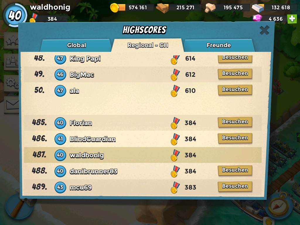 Hahahahh rang 47!!!! Wenn ich soweit käme müsste ich vermutlich viele Franken investieren. Ich bin Rang 472 nicht 47.