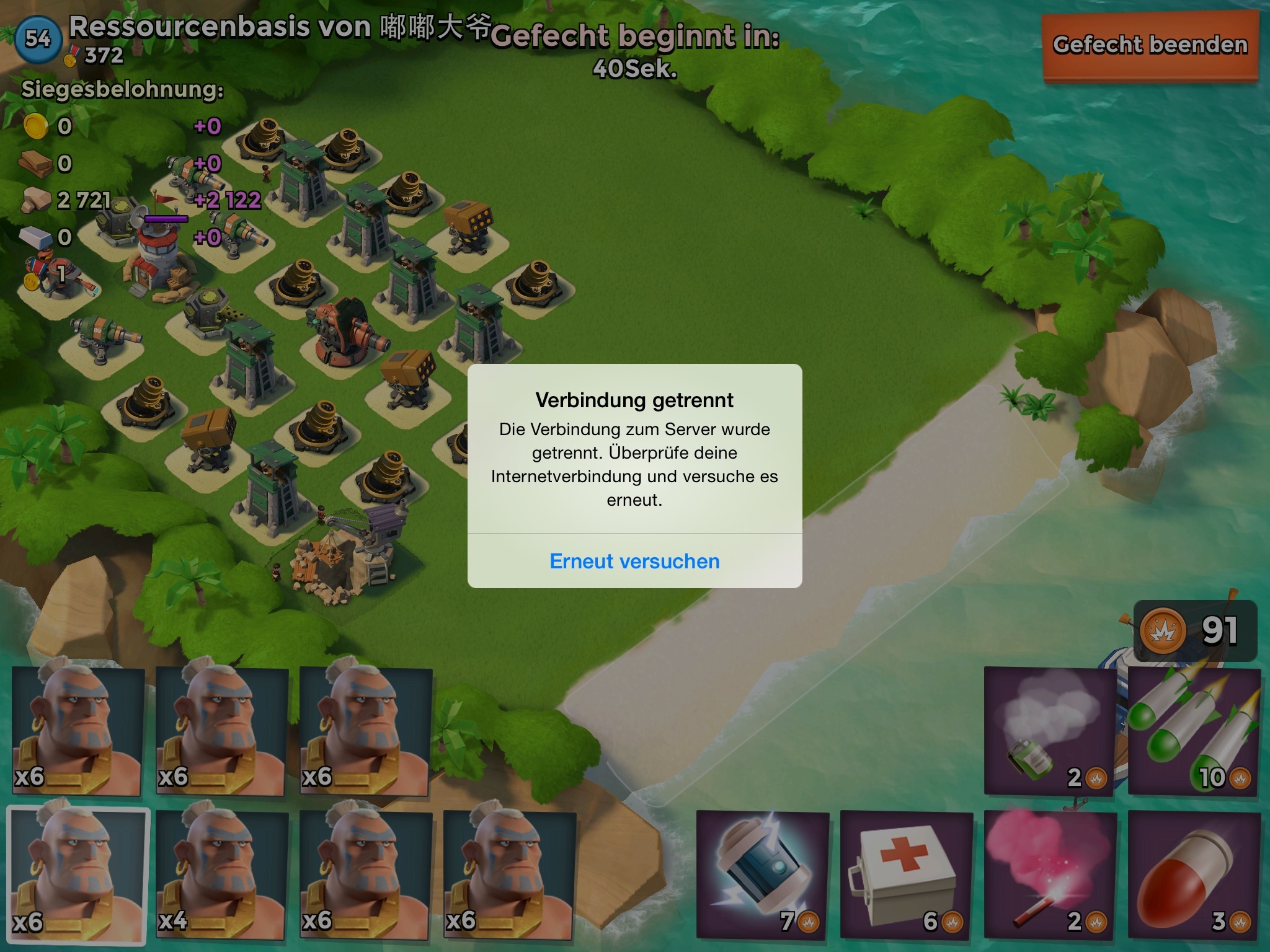 #5 Alles anzeigenhat noch wer gerade Probleme in einen Angriff zu gehen? Meine Verbindung wird dann stetig unterbrochen - auf der Karte funkt alles...