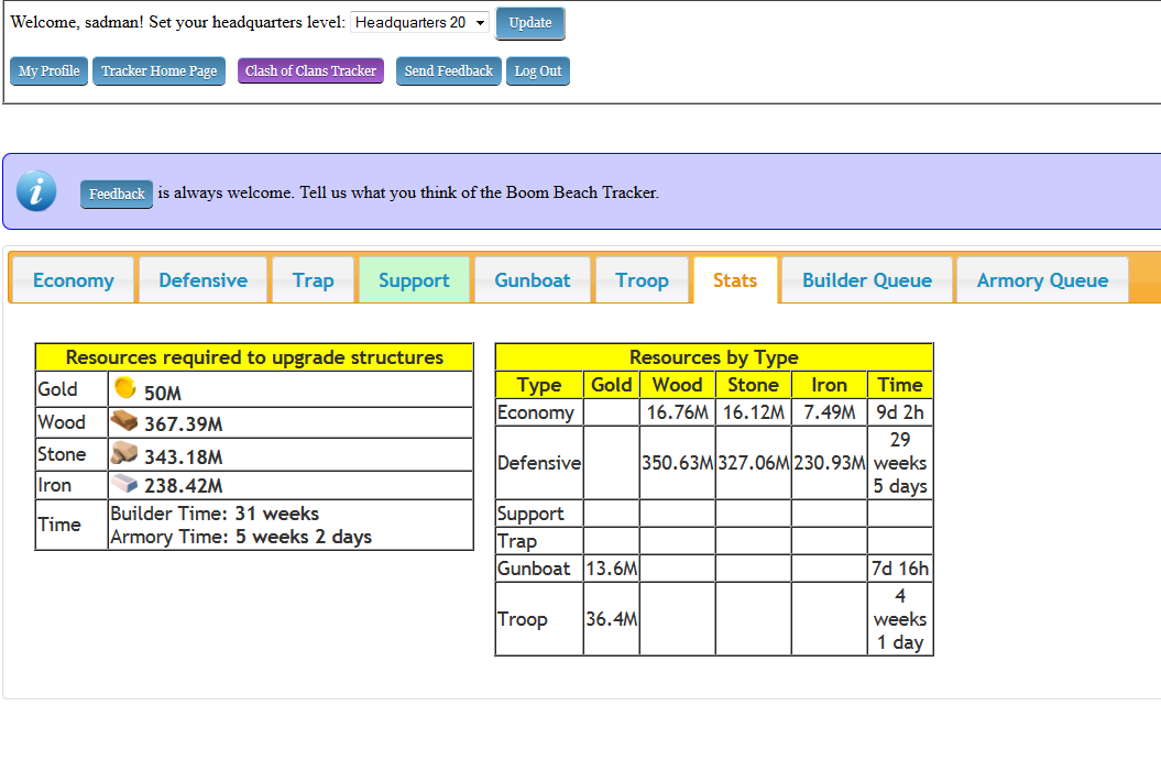 Damit kann man ausrechnen wieviel Zeit und Ressourcen man noch braucht um seine Base, Arsenal, LC usw... zu maxen.