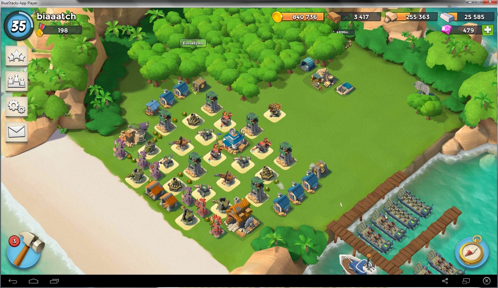 hab beim sprung auf 15 meine base komplett an den strand geballert. wurde zwar erst 1x angegriffen, aber ein lowie LVL30 ist mit halb zooka halb schütze bedrohlich nahe gekommen. und das lustigste, ich wusste nicht wie die schützen heissen weil ich sie nie benutze, hab grad nachgegugt, und der hat doch echt vor 1min nochmal angegriffn! ok,beim ersten versuch ist er bedrohlich nahe gekommen, hab die dann etwas umgebaut, sein 2ter angriff eben war ein epic fail. aber da ich schonmal am tippen bin, kann ja bitte wenn jmd ne idee zur verbeserung hat mir nen tip geben?!