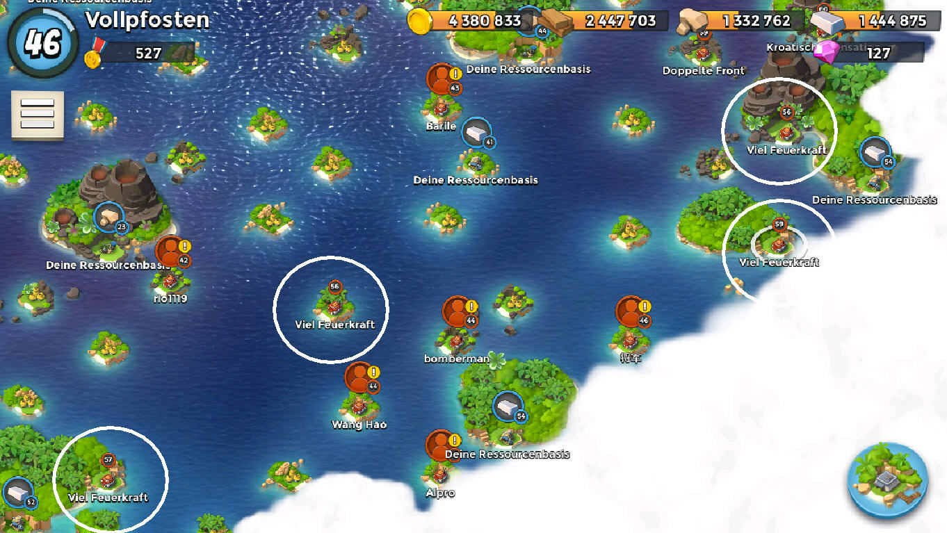 . Also deine Grützbasen bekomme ich nicht. Einzig die "reiches Ziel" in Level 42 mischt sich unter meine 56-60er, sonst alles gut, wenn man von der Langeweile absieht.