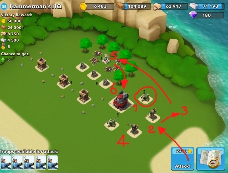 3. per Flare zu Punkt 3 dirigieren, sonst laufen die Tanks in die linke Cannon