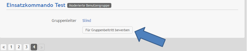 3. Hier suchst du nach deinem Einsatzkommando, und klickst auf "Für Gruppenbeitritt bewerben"