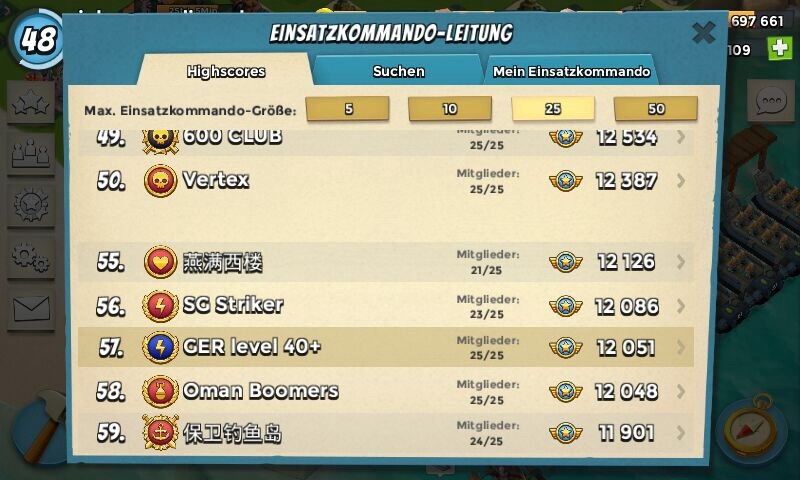 Mein persönliches Ziel, eine dt Mannschaft dabei zu unterstützen, in die top50 zu kommen.Wie es der Zufall will, haben sich mehrere starke Spieler in verschiedenen deutschen 25er tf's (mir sind 4 Teams bekannt) gefunden. Das macht es zum Einen spannend, zum Anderen bleibt es eine grosse Herausforderung das Ziel zu erreichen. Für top50 ist tägl. Foxtrott Minimum.