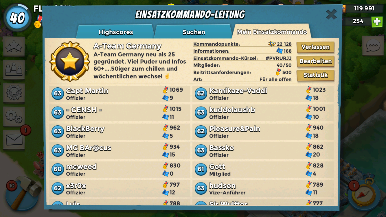 Wir haben uns einige Zeit nach Einführung der TF’s als A-Team Germany neu gegründet. In unserer ersten Taskforce hatte der Anführer leider nur die Inaktiven angeführt. Obwohl wir viele hart erkämpfte Punkte liegen lassen mussten haben wir ein neues Team gegründet und der Großteil der Jungs ist mit rübergemacht. Seit dem haben uns super Neuzugänge verstärkt und ergänzt. Durch die Neugründung hingen wir mit den Kommandopunkten ein wenig hinterher, holen aber stetig auf.