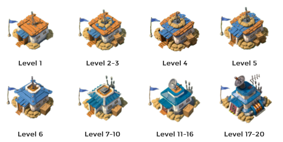- Wenn das Hauptquartier verbessert wird werden neue Gebäude, Truppen und Kanonenboot-Waffen freigeschaltet.