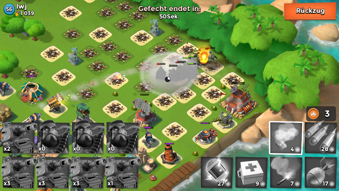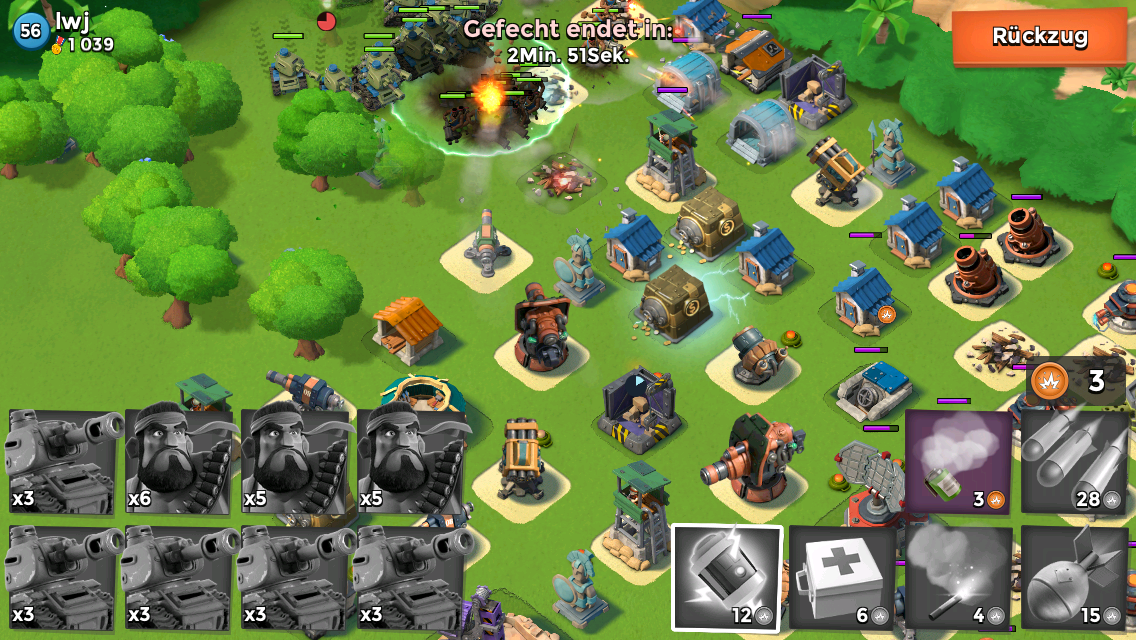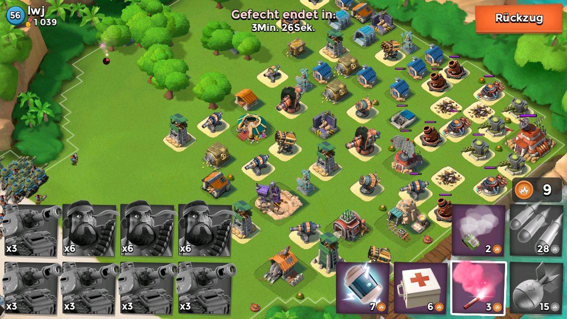 Nach nun 2 Wochen in denen ich max Tanks habe, bekomme ich als alter Warriorspieler fast jede Base ungepudert down! Es war wirklich lustig zu merken, dass ich von nun an nicht mehr groß planen muss und relativ gut durchkomme, weil ich mittlerweile meine Tanks kenne. Da meine Taktik jedoch sehr einseitig und nahezu immer gleich ist würde ich gerne ein paar Erfahrungswerte/Alternativen hören. Meine eigene Def hilft mir null weiter, da kommt ein Boot mit max Tanks durch!