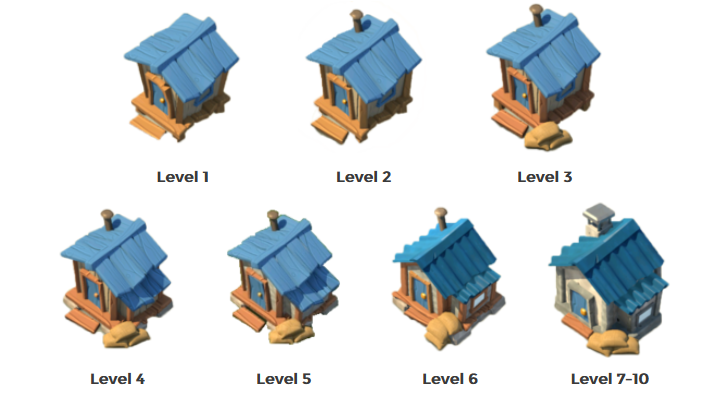 - Das Wohngebäude produziert durchgehend Gold, außer wenn es verbessert wird oder das Produktionslimit erreicht ist.