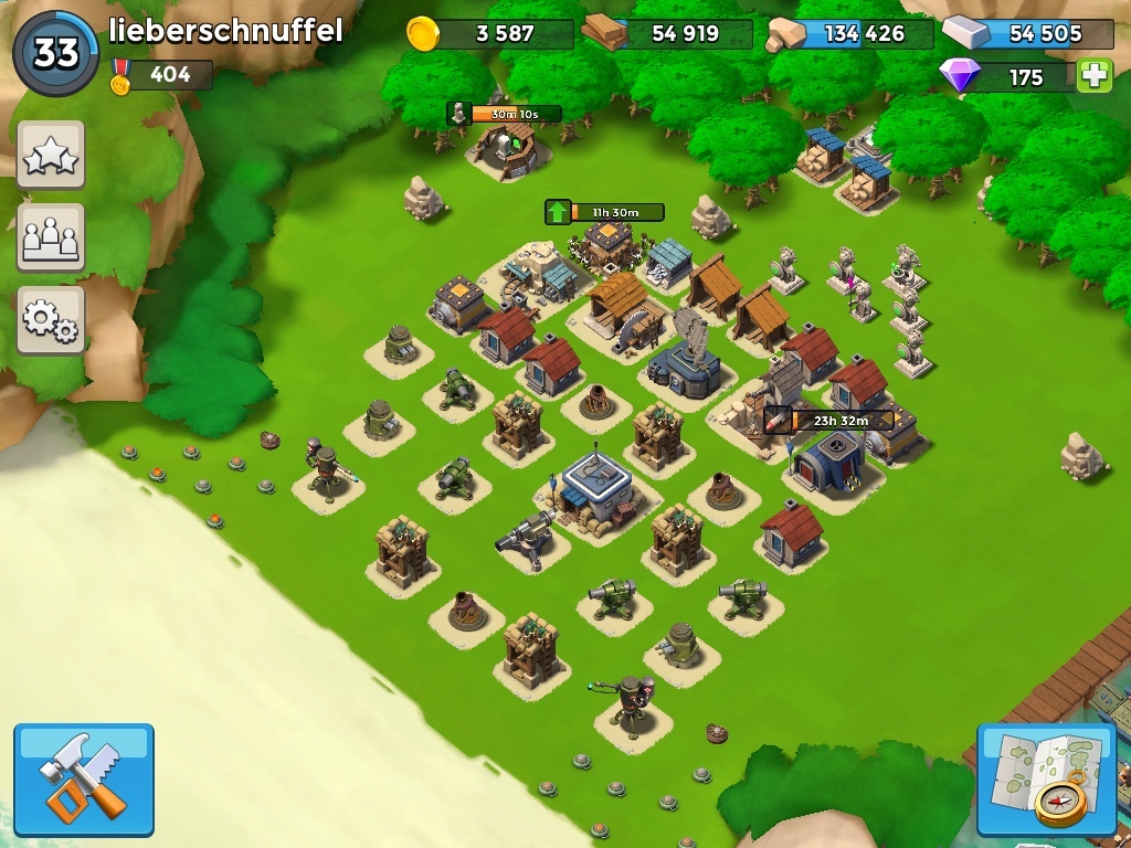 Anbei meine aktuelle Basis. Wie man sieht, hat sich am HQ seit 8 Lvl nix geändert ![]()