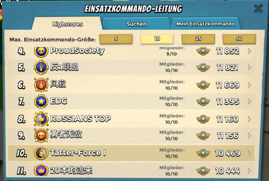 Für normal spielen wir "Engstelle", "Neid der Besitzlosen" und auch schon mal "Zunderbüchse". Wir sind ehrgeizig, aber nicht besessen (ausser Kreuer, der will immer "Foxtrot" spielen), nehmen uns Zeit (geht im Alter auch nicht anders) und werden mit allen Problemen fertig. Es gibt nur wenig Fluktuation in unserem Team und wenn es irgendwas gibt, was an BoomBeach den meisten Spass macht, dann ist das, mit diesem Team die Basen zu legen.