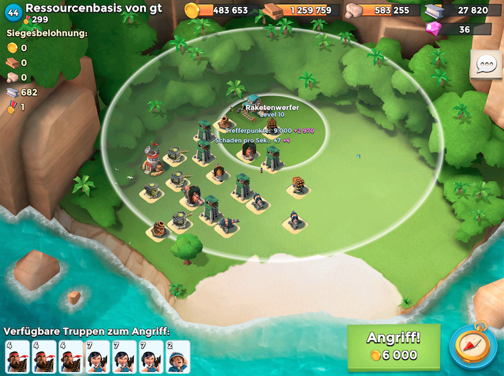 ich wende mich hier an euch, da ich nicht mehr weiter weiß. Ich habe nun schon vieles probiert, packe diese Ressourcenbasis aber schlichtweg nicht. Die Auswahl eines neuen Gegner verhilft mir jedes mal lediglich, eine noch schwierigere Basis zu bekommen.