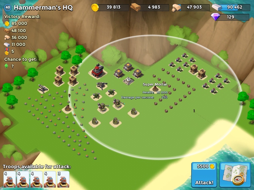 4. sollten die Mörser hoffentlich gleichzeitg schiessen, Flare auf ein Goldlager setzen