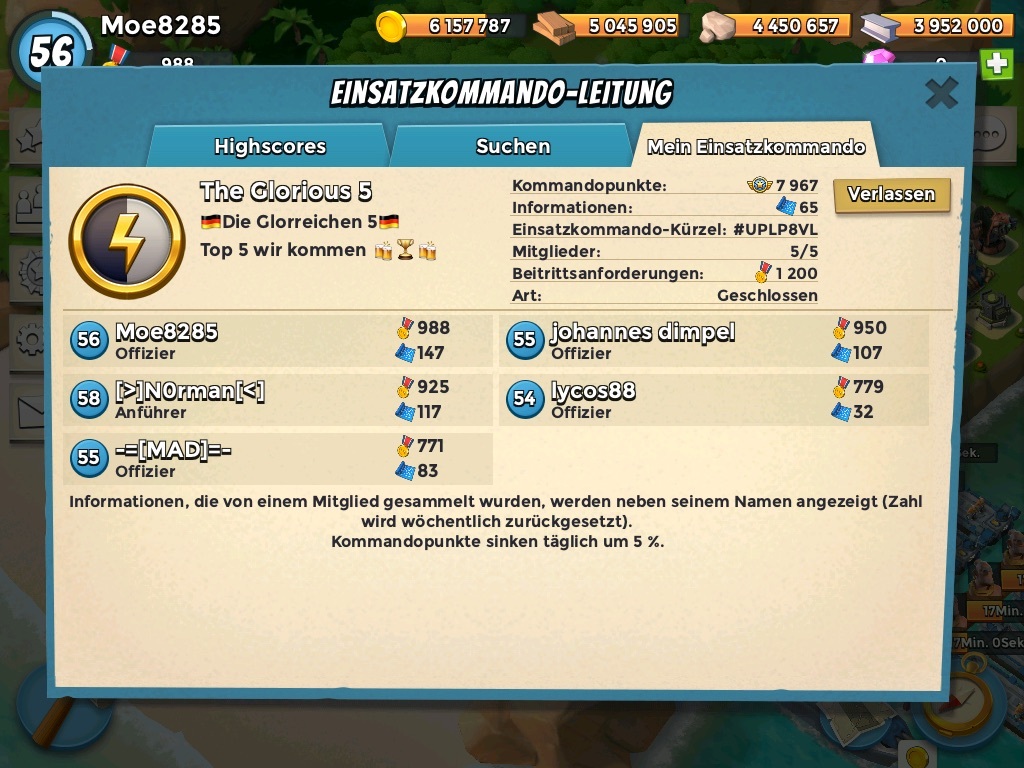 Viele von uns Ex Ger hätten beinahe aufgehört mit Boom Beach,aber durch die aufsplittung in kleinere Gruppen kam der Spaß zurück und wir sind ehrgeizig wie zuvor