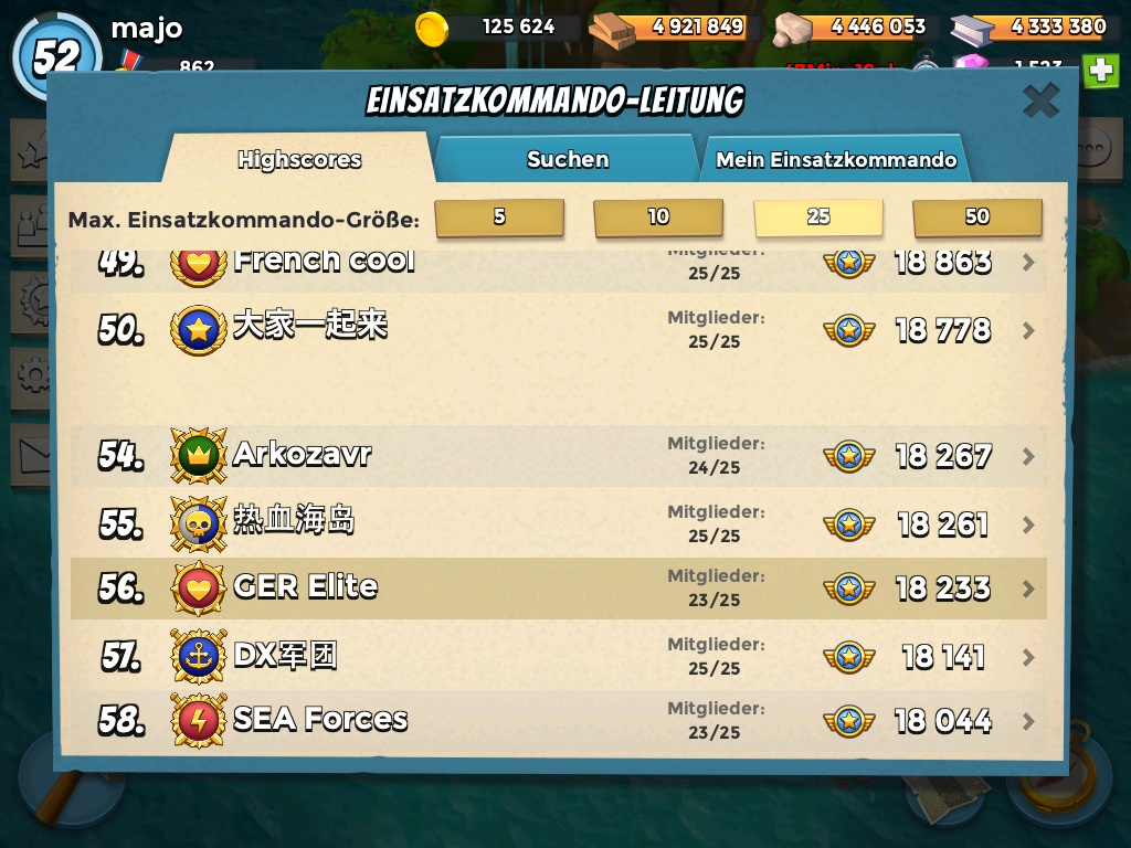 Die 990er beginnt fast schon langweilig zu werden! Heute war sie in 16 Angriffen erledigt. Aber wenn wir zwei Spieler fnden würden, die beide ca. 100 Infos die Woche schaffen, dann könnten wir 5-6 mal in der Woche die 1110er starten. Bist Du einer dieser Spieler? Dann komm zur GER Elite und rocke mit uns die Top 50.