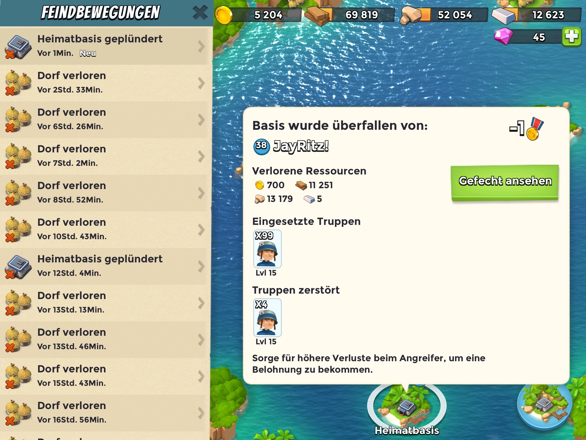 Lutz, klarer Fall von zu weit entfernter Defense, die leicht hinten herum umgangen werden kann. Führe die Sniper näher an das HQ heran und decke sie mit Economy - zb den Residenzen -ab. Den Mörser möglichst hinter das HQ. Das MG als Vorhut, um Kräfte früh zu attackieren.