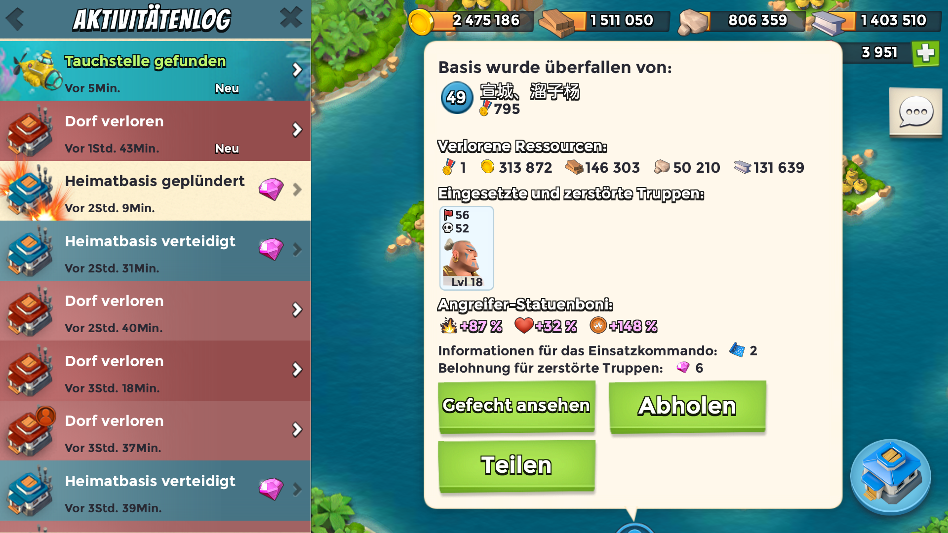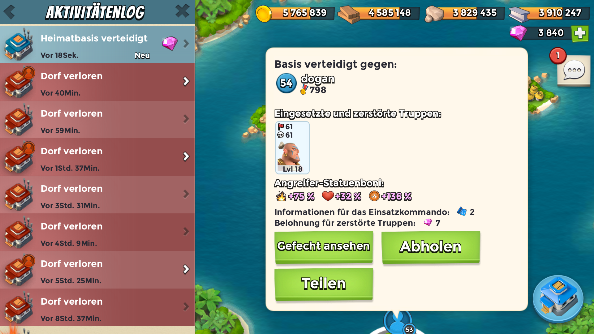 #19 Alles anzeigenWenn Deine Verteidigung auf Deiner Base den Angreifer besiegt, bzw. seine Truppen zerstört hat.