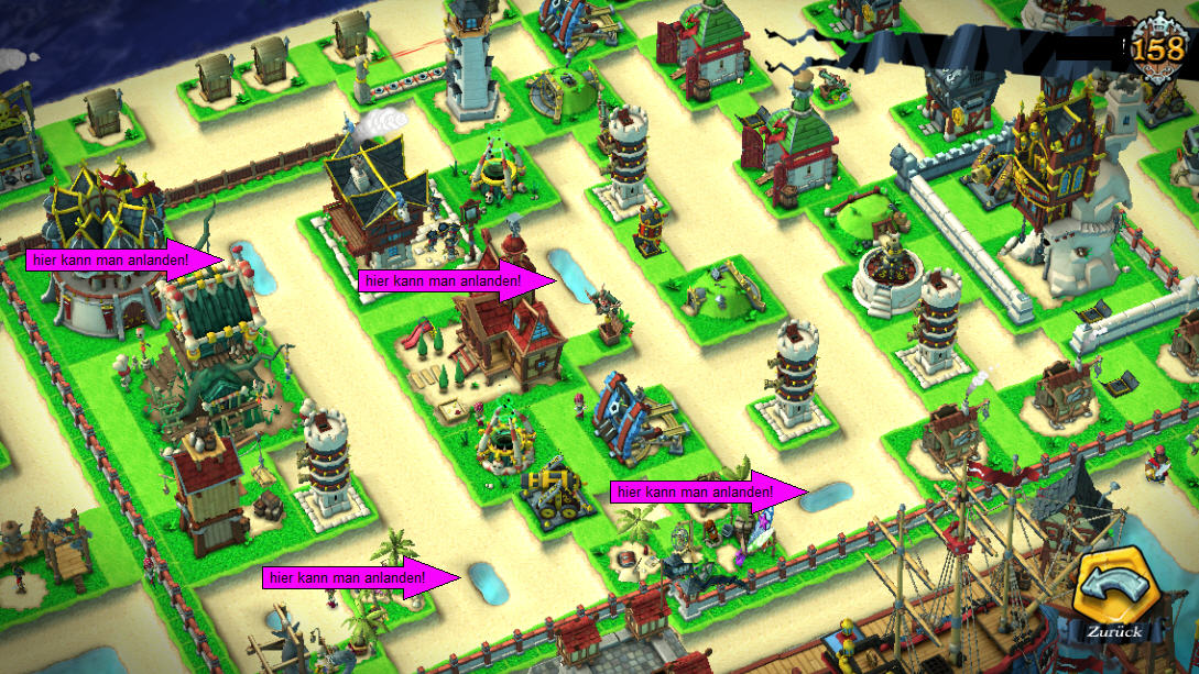 Mein heutiger Tipp betrifft das eigene Layout, aber auch die Möglichkeit für einen ggf. "einfacheren" Angriff. Es geht um die sog. "Lunker", die man (besonders in den unteren Levelen) recht häufig antrifft. Da es keine wirkliche Insel gibt, auf der man sein Piratenversteck aufstellt, sondern die Insel-Objekte quasi ihre eigene Landmasse mitbringen, kommt es häufiger vor, daß die Kapitäne beim Bau ein kleines (oder auch größeres) Fleckchen Wasser übrig lassen. Ihr ahnt es schon, denke ich . ..da kann man tatsächlich seine Truppen anlanden. Nicht nur einen oder so, sondern die gesamte Truppe kann in einem kleinen Lunker anlanden.