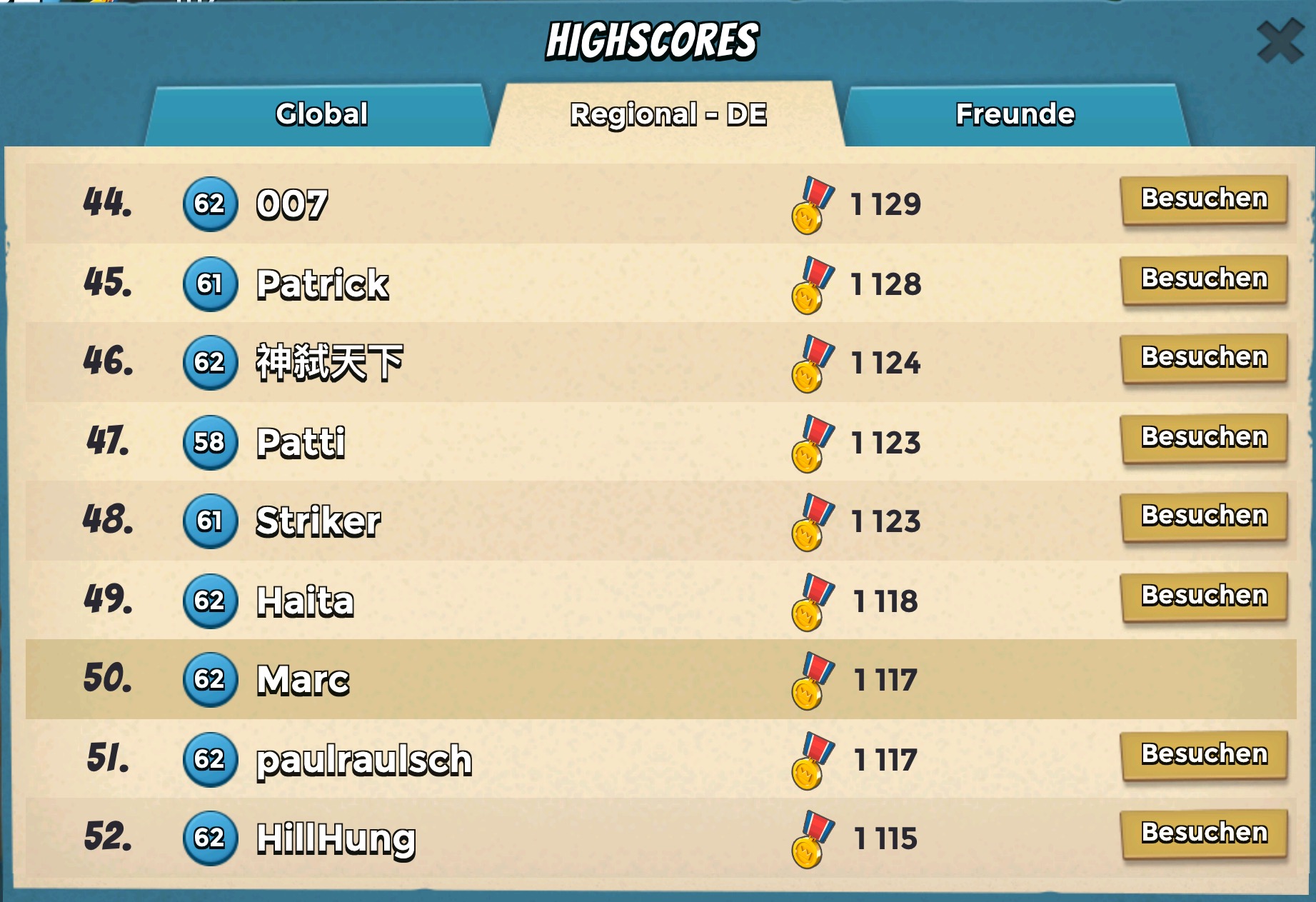 #2 Alles anzeigenDa das Inet nix vergisst ... Schnell hier rein. Ziel erreicht. TOP 50 ohne den Einsatz blauer Statuen. Ich freu mich wie Bolle