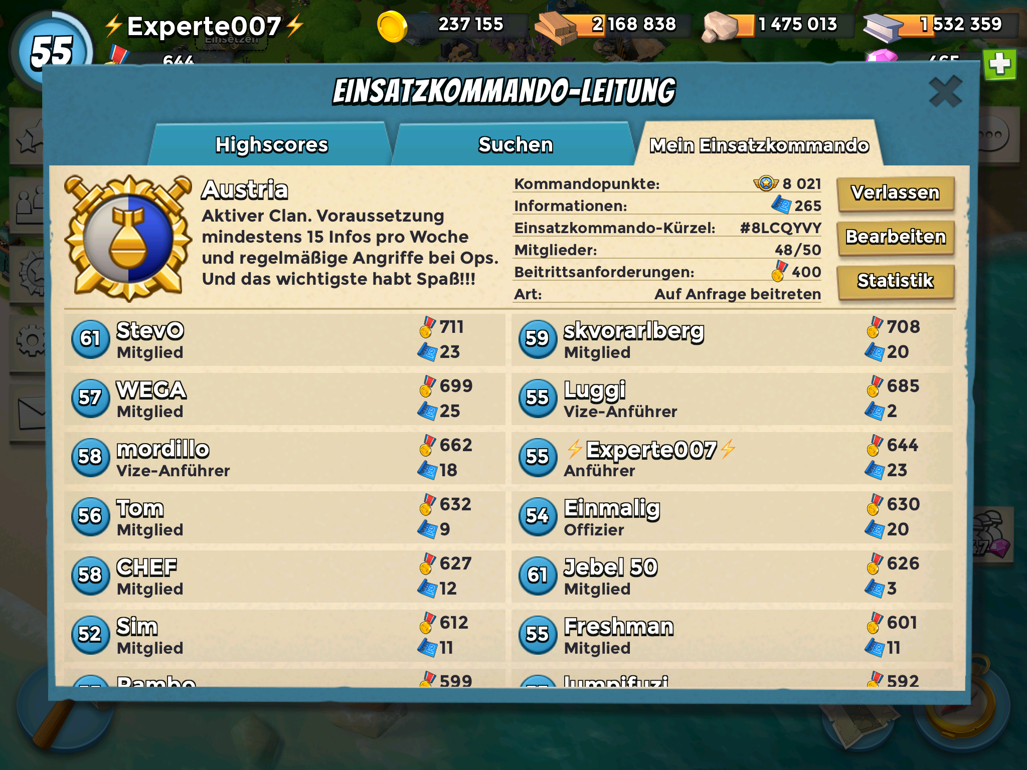 Uns ist wichtig das alle bei den Ops alles geben und die Notizen lesen. Und wenn einmal ein Angriff nicht so gut ist ist es auch kein Problem. Es müssen in der Woche um die 20 Infos gesammelt werden nach oben natürlich keine Grenzen :D.