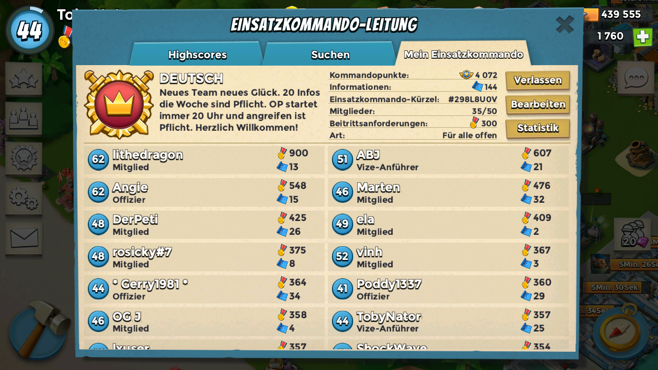 [25er TF] "Minenräumer" 500 SP+, Level 45-65 Komm um zu bleiben, gemeinsamer Aufstieg, entspannter Chat, viele OP´s