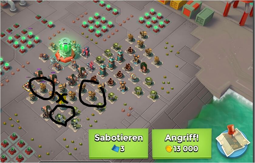 Flare in die mitte der rw (siehe anhang) und dann shock drum herum und dann dnach links hoch ziehen, evtl. zweiter krieger angriff, dann über links außen hoch....