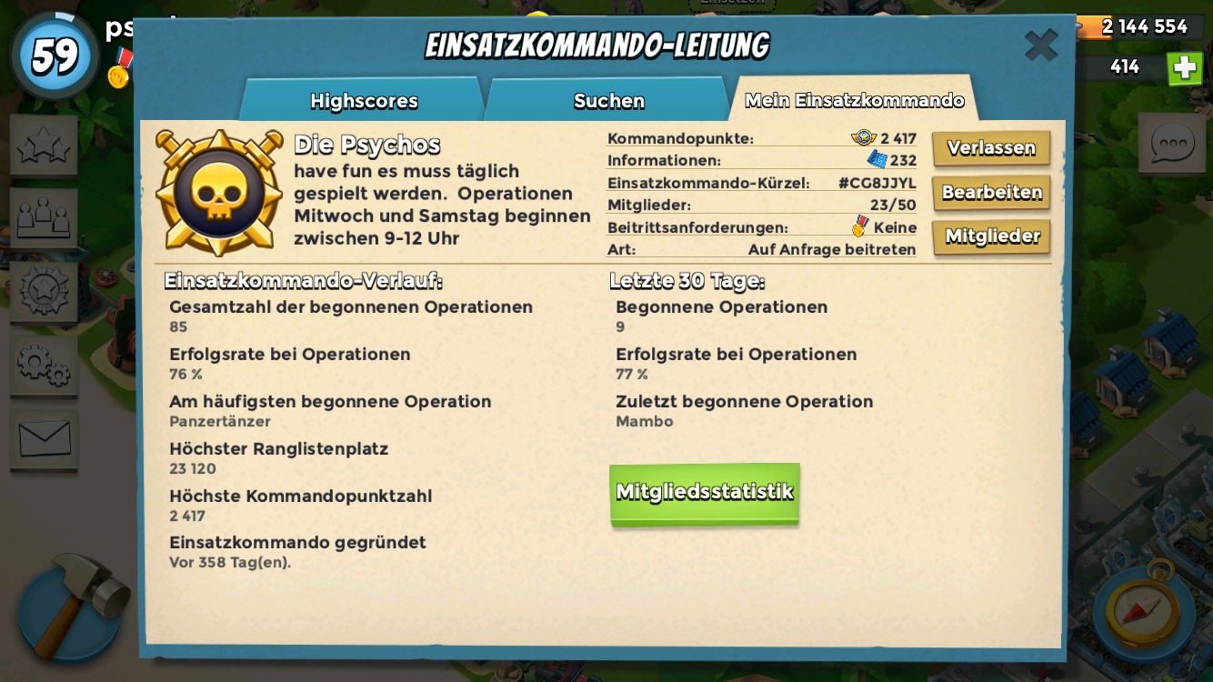 Wir sind ein Gutes Team und starten derzeit OPs in der Woche um Tickets zu sammeln wenn wir mehr Spieler werden dann werden die Anzahl der OPs auch erhöht.