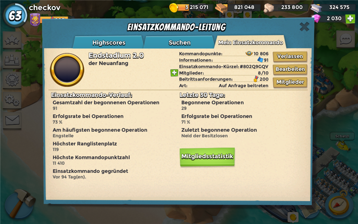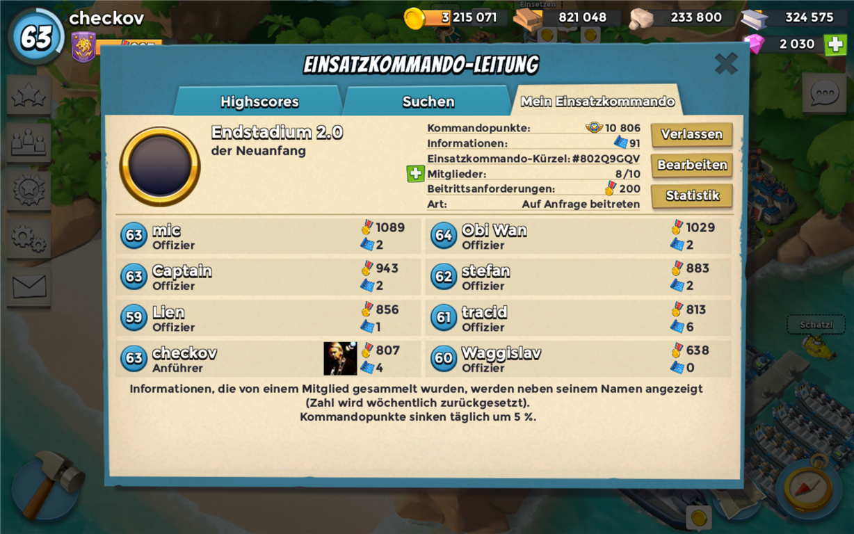 Wir sind Endstadium 2.0 und haben aktuell 2 Plätze frei! Zur Zeit sind wir Platz 5 der offiziellen Forumrangliste der 10er TFs und haben um die 11000 Punkte.