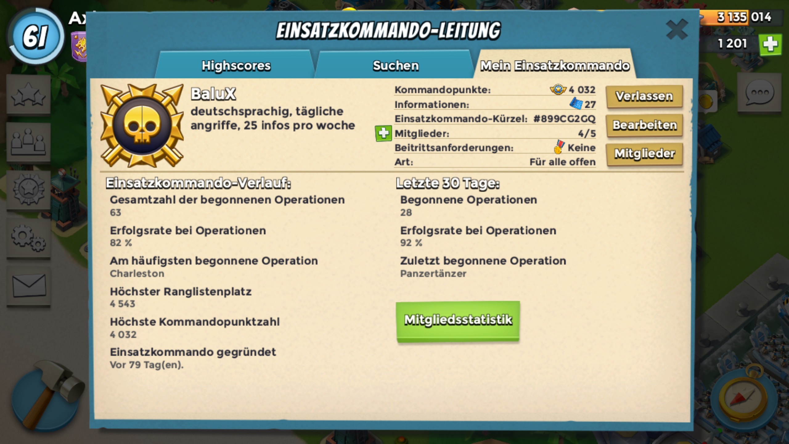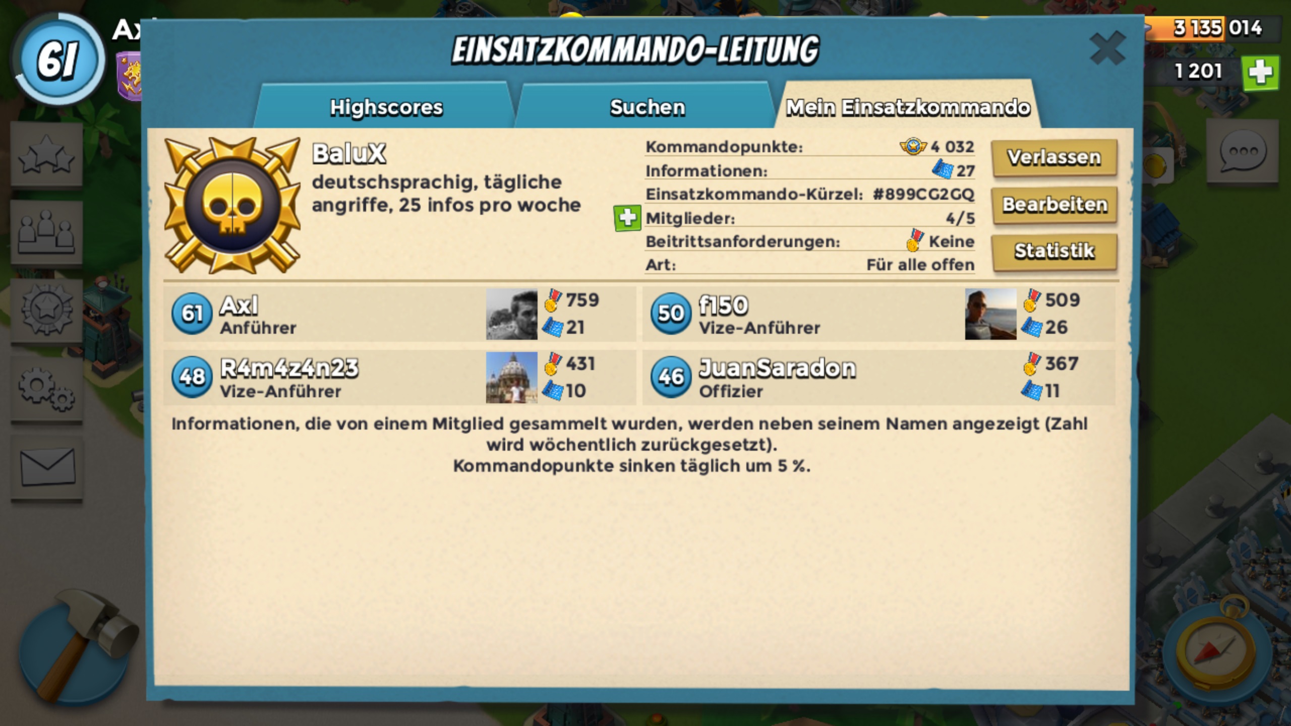 Sind noch recht jung ~80 Tage alt und uns fehlt noch ein weiterer Spieler. Später wird ein 10er angepeilt. Tägliche Angriffe sind Pflicht und ~30 Intel/Woche.