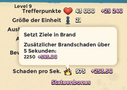 Vergleichbar mit dem Flammenwerfer in deiner Abwehr. Dort brennen die Truppen noch 5 Sekunden weiter.