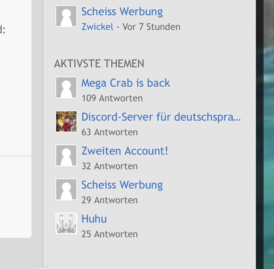 Zusätzlich werden neue Threads nicht direkt in der Box erscheinen, da die Liste in der Box aus Performance Gründen für 1 Stunde gecached wird.