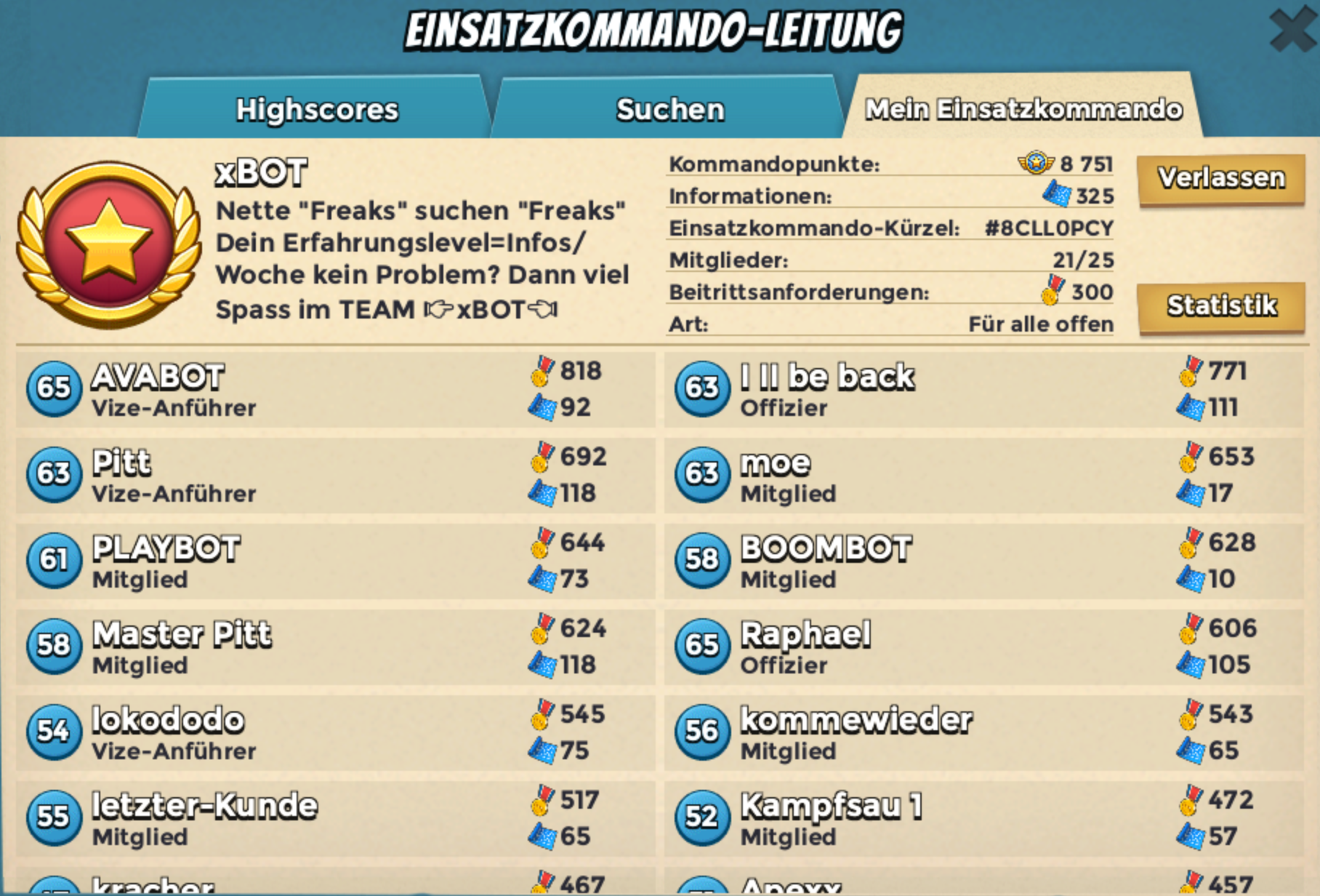 wer Lust hat uns auf dem Weg nach oben zu begleiten kann gern mal reinschauen, wir freuen uns auf jeden neuen Spieler.