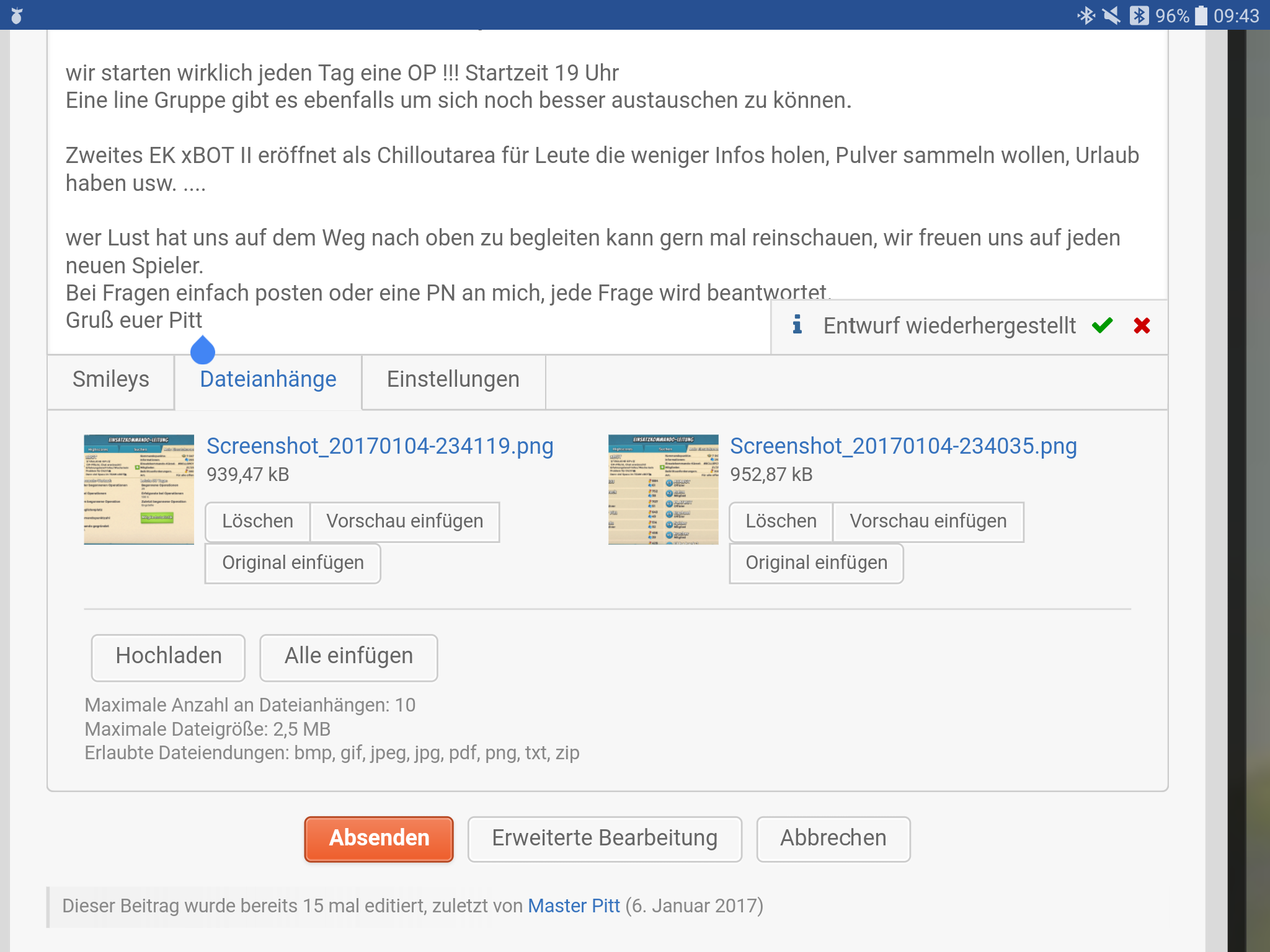 Nachdem mir Brini beim ersten Mal geholfen hat die Dateianhänge zu löschen, stehe ich nun wieder vor dem selben Problem.